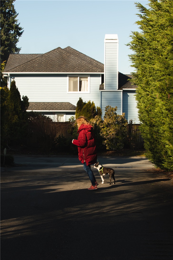 ▲皮斯朗普在遛狗