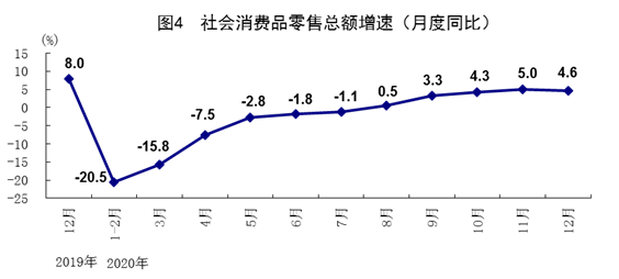 根據(jù)第四次全國(guó)經(jīng)濟(jì)普查結(jié)果對(duì)2019年社會(huì)消費(fèi)品零售總額進(jìn)行了修訂,2020年月度增速按照可比口徑計(jì)算。
