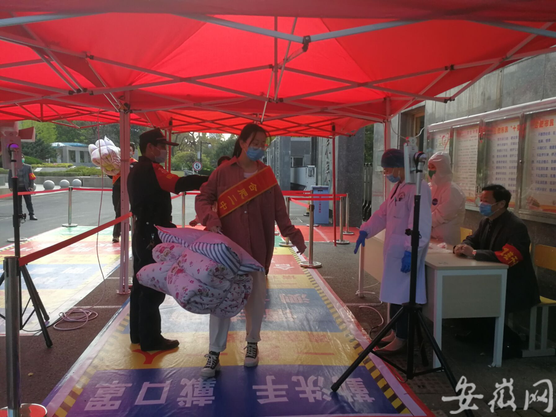 今天早上7點多,合肥市第二中學(xué)門口,高三學(xué)生開始陸續(xù)進校。新安晚報記者在現(xiàn)場看到,交警在校門口維持秩序,送孩子上學(xué)的車輛即停即走。由于不允許家長送孩子進入校園,合肥二中設(shè)置了專門進入校園通道,組織了一些學(xué)生志愿者,用小推車幫學(xué)生運送被子等行李。