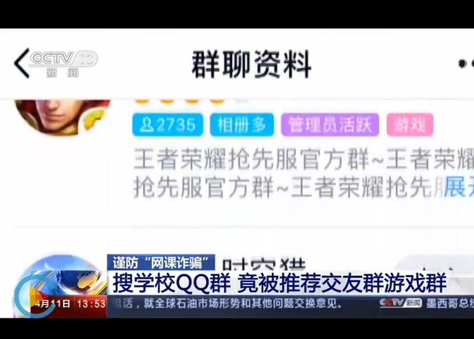 4月11日央視新聞發(fā)布視頻報道,發(fā)現(xiàn)一些擁有海量用戶的社交網(wǎng)絡(luò)平臺為了利益,疏于管理,不良內(nèi)容很容易就傳播給未成年人。央視稱,近期在針對以學(xué)生為主的騙局中,以QQ為代表的社交軟件是不法分子行騙的主要工具。中小學(xué)生群體在使用QQ群時很容易接觸到不良信息。