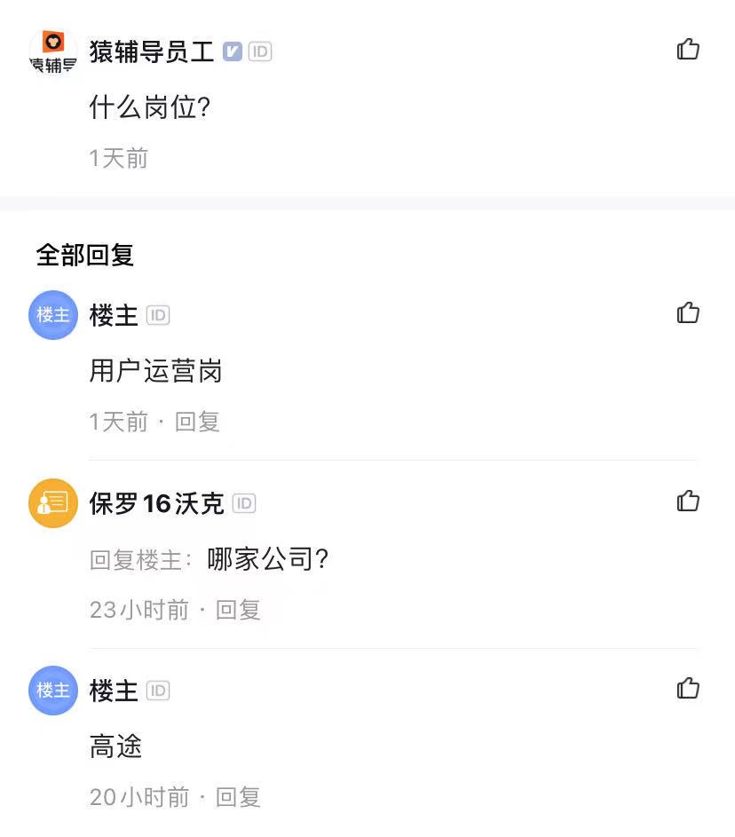 某位應屆畢業(yè)生在脈脈吐槽,還沒入職就被裁,被社會狠狠毒打又要開始找工作。在被詢問是什么崗位時,他表示是用戶運營崗,裁員的公司是高途。