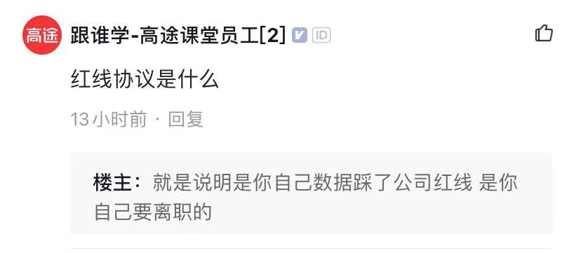 而關于紅線協(xié)議,該員工表示這是員工的數(shù)據(jù)踩了公司紅線,是自己提出離職才走的。