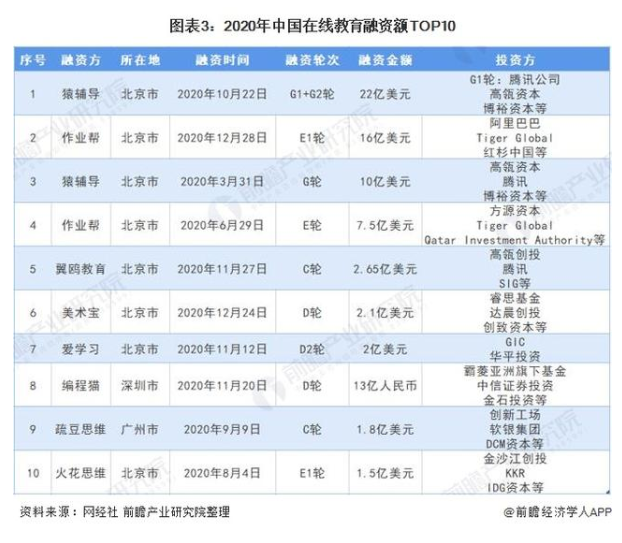另有業(yè)內(nèi)人士表示,2020年頭部教育品牌的融資接二連三,而資本方也趨向頭部平臺,據(jù)網(wǎng)經(jīng)社發(fā)布的2020年中國在線教育融資額TOP10來看,最大的10筆融資金額總額近440億元。
