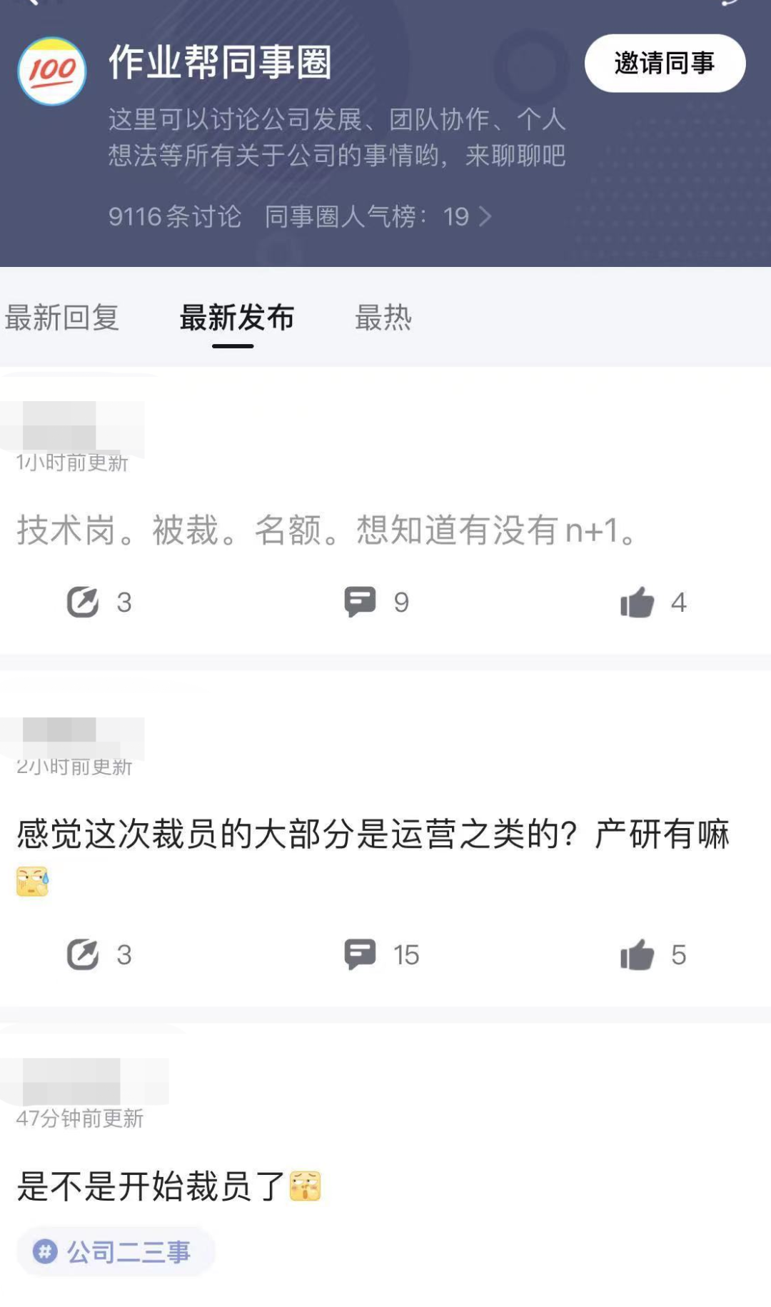 有爆料稱這次作業(yè)幫裁員潮大部分是運營崗,然而部分員工表示,產(chǎn)研也不安全。