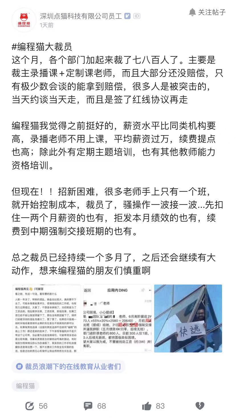 編程貓也被曝開始了大裁員。
