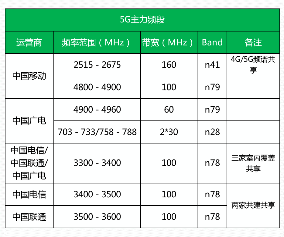 三大運(yùn)營(yíng)商的2G/3G/4G/5G網(wǎng)絡(luò)頻段,都是國(guó)家規(guī)定好的。手機(jī)和基站,都只能使用指定的頻段,進(jìn)行通信。