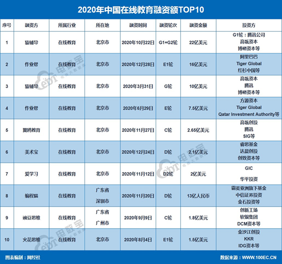 就在周楓喊出這句口號之前,資本對于在線教育的投入已經(jīng)堪稱“瘋狂”。2020年3月和8月,猿輔導分別宣布獲得10億美元和12億美元的融資;2020年6月,作業(yè)幫宣布獲得7.5億美元E輪融資;2020年4月和8月,火花思維分別宣布獲得3000萬美元和1.5億美元融資;2020年9月,豌豆思維宣布獲得2億美元C輪融資。