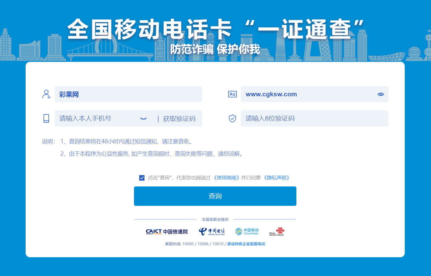 一證通查(手機(jī)端):https://getsimnum.caict.ac.cn/m/#/