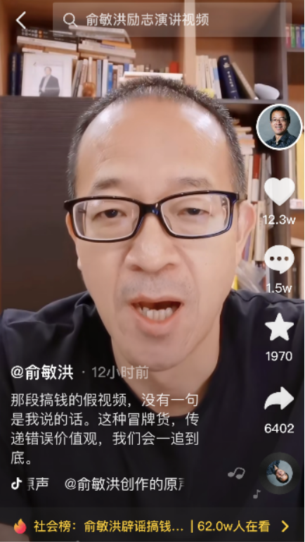 新東方董事長(zhǎng)俞敏洪抖音回應(yīng)“搞錢視頻”:完全不是我講的話,已啟動(dòng)起訴程序