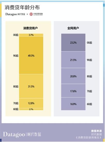 報(bào)告顯示,消費(fèi)貸年齡分布上,90后幾乎占據(jù)半壁江山,占比為49.3%;其次是80后,占比為31.5%。一組數(shù)字顯示,全國(guó)有1.75億名90后,其中只有13.4%的年輕人沒(méi)有負(fù)債,而86.6%的90后都接觸過(guò)信貸產(chǎn)品。
