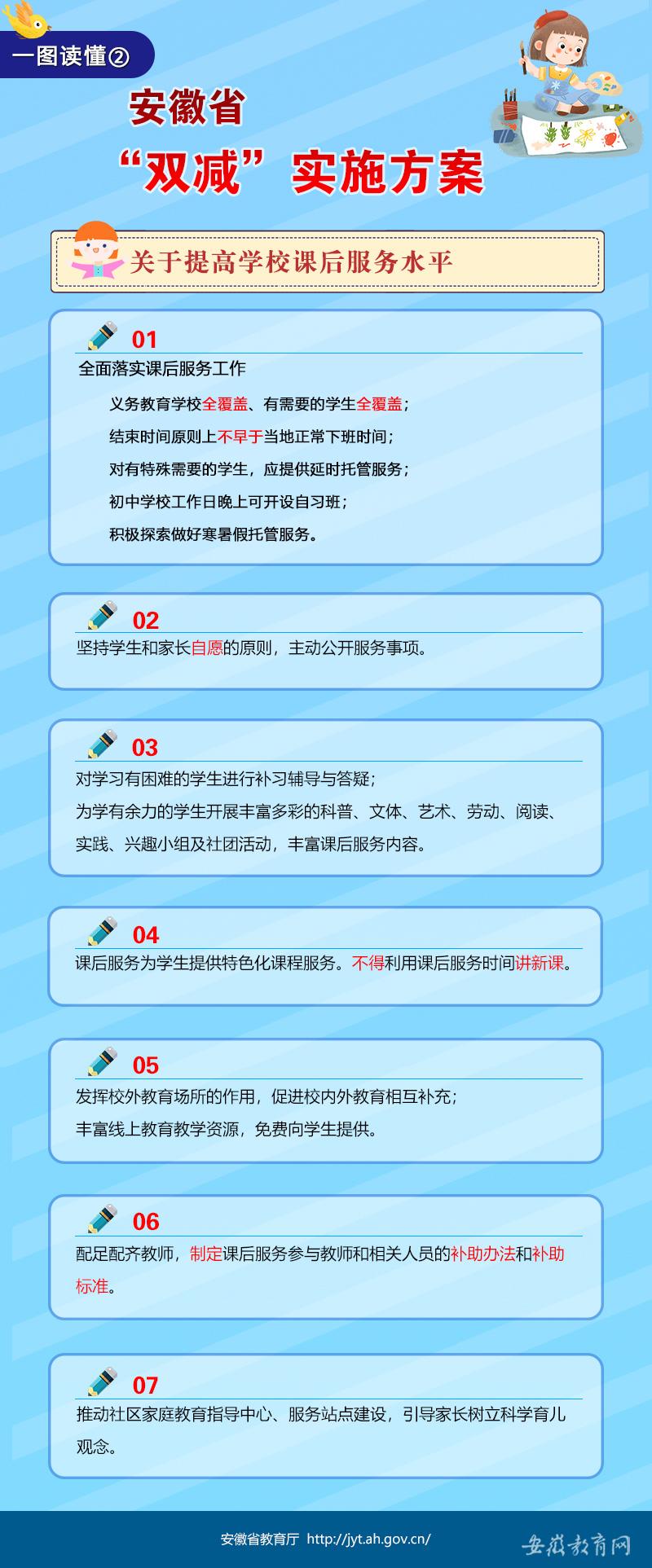 一圖讀懂《安徽省進(jìn)一步減輕義務(wù)教育階段學(xué)生作業(yè)負(fù)擔(dān)和校外培訓(xùn)負(fù)擔(dān)的實(shí)施方案》