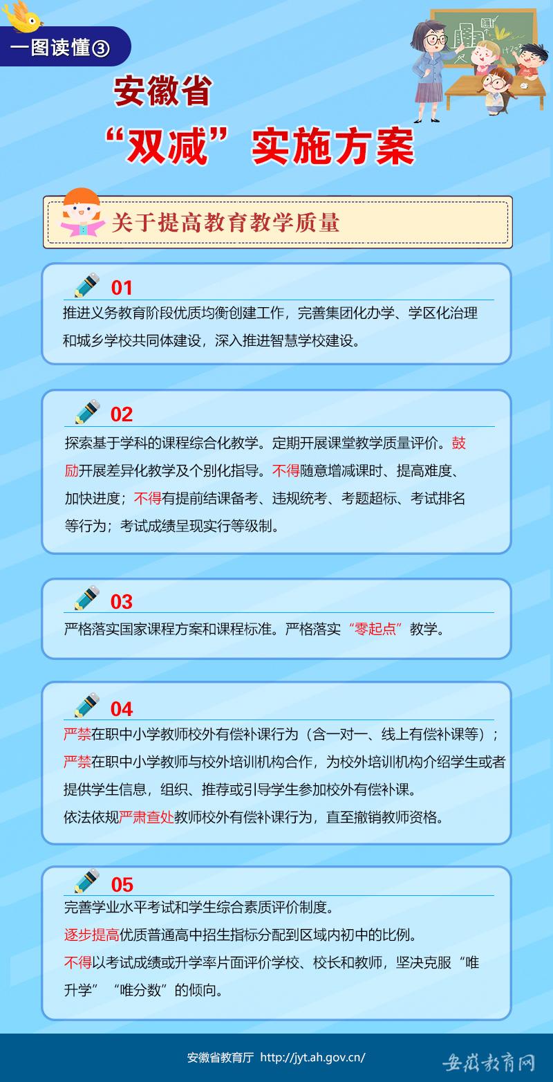 您的位置:首頁 / 行業(yè)資訊 / 一圖讀懂《安徽省進(jìn)一步減輕義務(wù)教育階段學(xué)生作業(yè)負(fù)擔(dān)和校外培訓(xùn)負(fù)擔(dān)的實(shí)施方案》