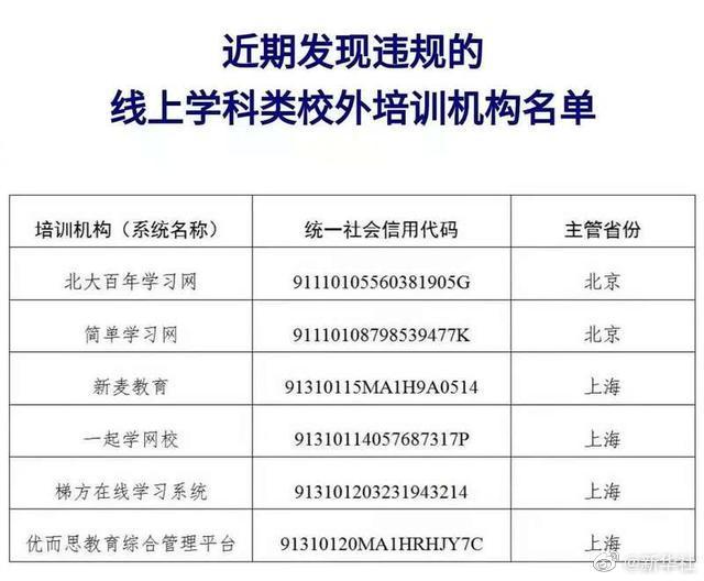 2021-11-06 00:16:39閱讀()新華社國務(wù)院教育督導(dǎo)委員會(huì)辦公室近日發(fā)布通報(bào)指出,2021年秋季開學(xué)以來,北大百年學(xué)習(xí)網(wǎng)、簡單學(xué)習(xí)網(wǎng)、新麥教育、一起學(xué)網(wǎng)校、梯方在線學(xué)習(xí)系統(tǒng)、優(yōu)而思教育綜合管理平臺(tái)等6家校外培訓(xùn)機(jī)構(gòu)存在在國家法定節(jié)假日、休息日、學(xué)生正常上課及休息等時(shí)段違規(guī)開班培訓(xùn)和內(nèi)部管理混亂、公示信息不符合規(guī)定等問題。