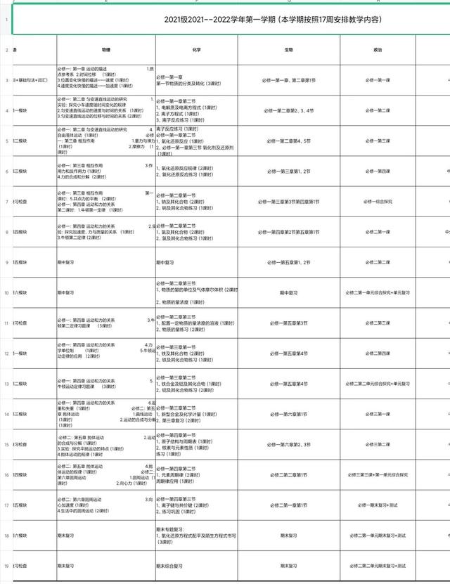 ▲桓臺一中相關教學安排表。受訪者供圖