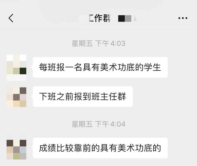 ▲李莉稱,期中考試后,學校要求每班上報一名成績靠前且具有美術功底的學生。受訪者供圖