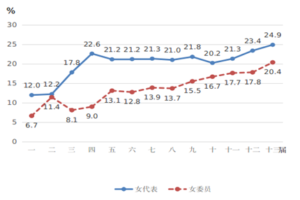 圖5 歷屆全國(guó)人大女代表、政協(xié)女委員所占比重