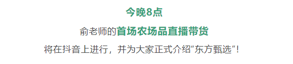 新東方還稱,今晚8點俞敏洪的首場農(nóng)場品直播帶貨將在抖音上進行,并正式介紹“東方甄選”。