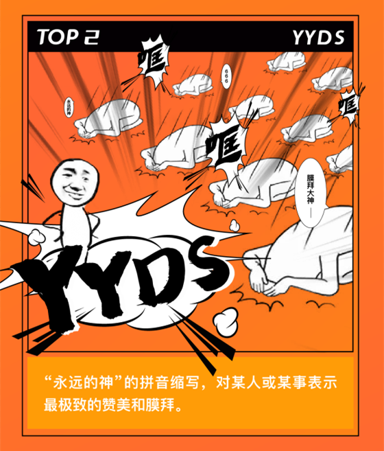 yyds是“永遠(yuǎn)的神”拼音首字母的縮寫,用來表達(dá)對于某個人、某個組織或者某件事最極致的贊美和膜拜。比如在今年的奧運(yùn)會上,一眾運(yùn)動員的神技能、神操作,讓網(wǎng)友直呼中國隊(duì)yyds!