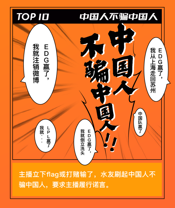 每當(dāng)主播們立下 Flag 卻輸了后,水友們最強(qiáng)有力的“催收”方式就是在屏幕上瘋狂刷起“中國人不騙中國人”的彈幕。一般面對這種情況,即便主播再想耍賴,也只能乖乖履約了。