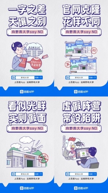 當(dāng)用戶搜索到野雞大學(xué)時,百度也會在搜索結(jié)果中進(jìn)行強提示:“這是虛假大學(xué)”。
