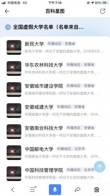 不僅如此,百度還提供了一個完整“野雞大學(xué)”名單及“正規(guī)大學(xué)名錄”,方便考生和家長甄別真?zhèn)?,避免落入野雞大學(xué)的陷阱之中。