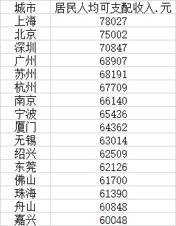 2021年十大收入最高城市:16城人均收入超6萬,滬京深逾7萬元