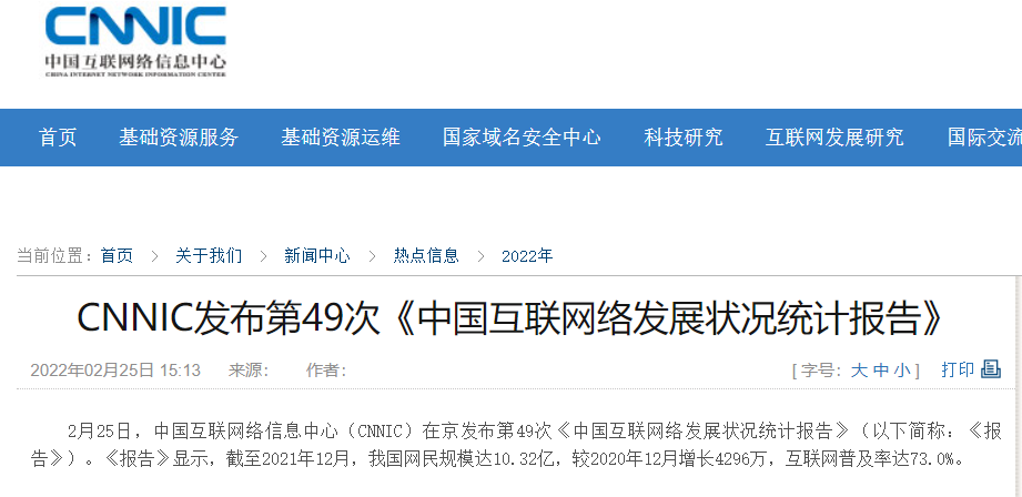 2022-02-26 02:18:23閱讀()中國互聯(lián)網(wǎng)絡(luò)信息中心