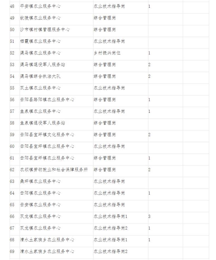 記者從相關崗位情況一覽表看到,本次招聘單位包括縣人才發(fā)展服務中心、縣精神文明建設指導中心、縣融媒體中心等,還有多個鄉(xiāng)鎮(zhèn)、街道辦事處,以及縣人民醫(yī)院、縣疾病預防控制中心和多所中小學等。