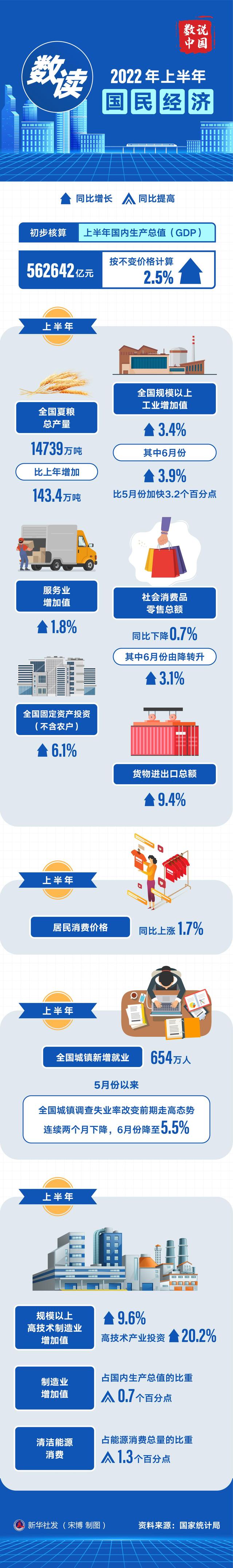 數(shù)讀2022年上半年國(guó)民經(jīng)濟(jì)