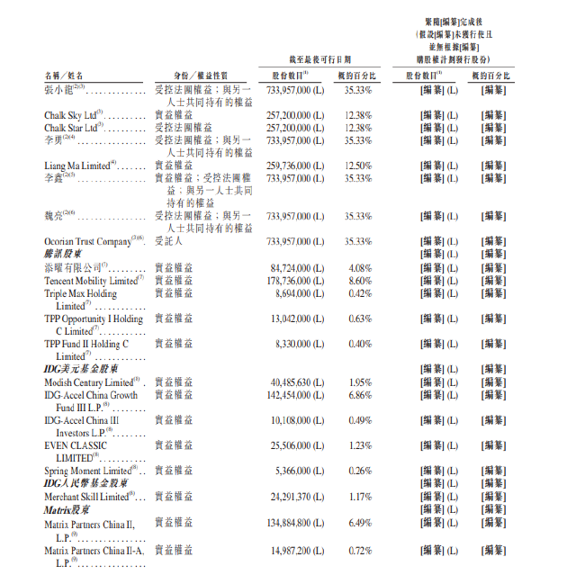招股書顯示,張小龍、李勇、李鑫、魏亮直接及透過其各自控制的中間實體(即中間股東)持有本公司已發(fā)行股本總額約35.33%;騰訊通過添曜有限公司等持股共14.13%。高瓴持股6.02%。