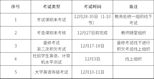 離校時(shí)間:以完成教學(xué)安排和考試任務(wù)為準(zhǔn),考完即可離校。考試安排由各學(xué)院同步發(fā)布。