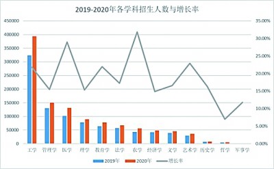 工學(xué)招生人數(shù)最多,管理學(xué)次之