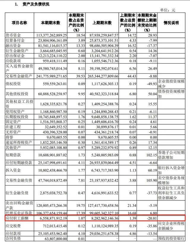 薪酬下降的具體幅度如何?財報顯示,2022年,招商證券應(yīng)付職工薪酬為65.59億元,同比下降20.81%。