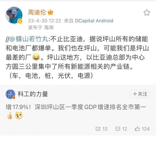 針對(duì)坪山區(qū)的一季度的經(jīng)濟(jì)數(shù)據(jù),有網(wǎng)友在社交媒體上稱,“不止比亞迪,據(jù)說坪山所有的儲(chǔ)能和電池廠都爆單。”“以比亞迪總部為中心方圓三公里集中所有新能源相關(guān)產(chǎn)業(yè)鏈。”