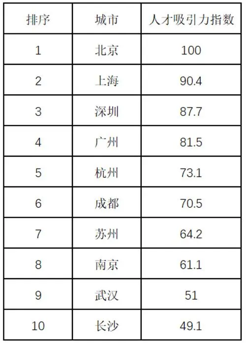 2021年最具人才吸引力城市10強(qiáng)