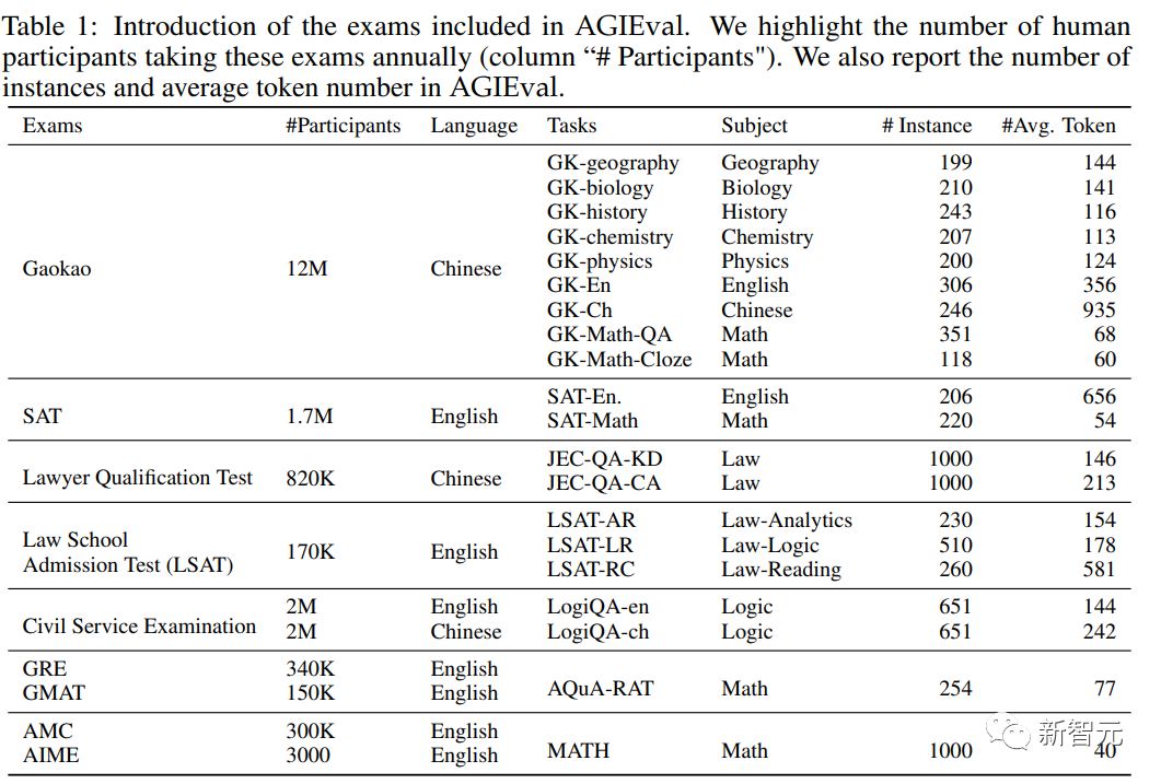 為了實現(xiàn)這一目標(biāo),研究人員選擇了各種官方的、公開的、高標(biāo)準(zhǔn)的招生和資格考試,以滿足一般人類應(yīng)試者的需要,包括大學(xué)入學(xué)考試、法學(xué)院入學(xué)考試、數(shù)學(xué)考試、律師資格考試和國家公務(wù)員考試,每年都有數(shù)百萬尋求進入高等教育或新職業(yè)道路的人參加這些考試。