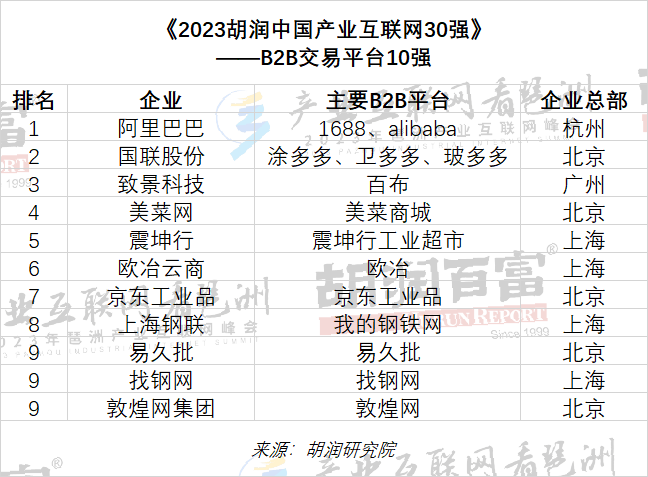 阿里巴巴、國聯(lián)股份、致景科技、美菜網(wǎng)、震坤行、歐冶云商、京東工業(yè)品、上海鋼聯(lián)、易久批、找鋼網(wǎng)、敦煌網(wǎng)集團(tuán)獲評“B2B交易平臺10強(qiáng)”。
