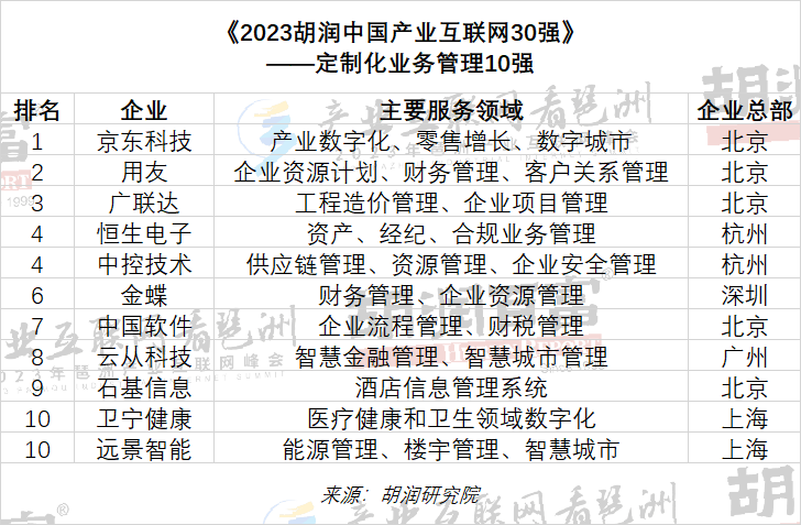 京東科技、用友、廣聯(lián)達(dá)、恒生電子、中控技術(shù)、金蝶、中國軟件、云從科技、石基信息、衛(wèi)寧健康、遠(yuǎn)景智能獲評“定制化業(yè)務(wù)管理10強(qiáng)”。