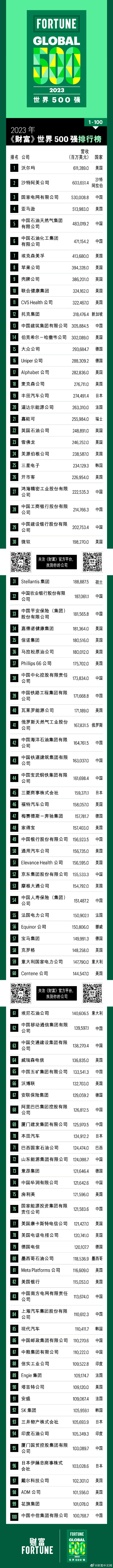 2023年財(cái)富世界500強(qiáng)排行榜揭曉:沃爾瑪蟬聯(lián)榜首,中國(guó)142家公司上榜