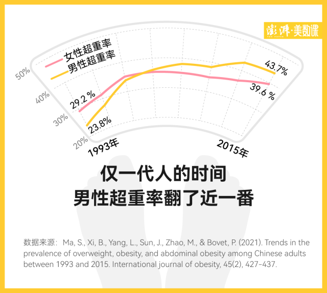 到了本世紀,國內(nèi)男性超重的比例開始迅速增加,并最終反超。