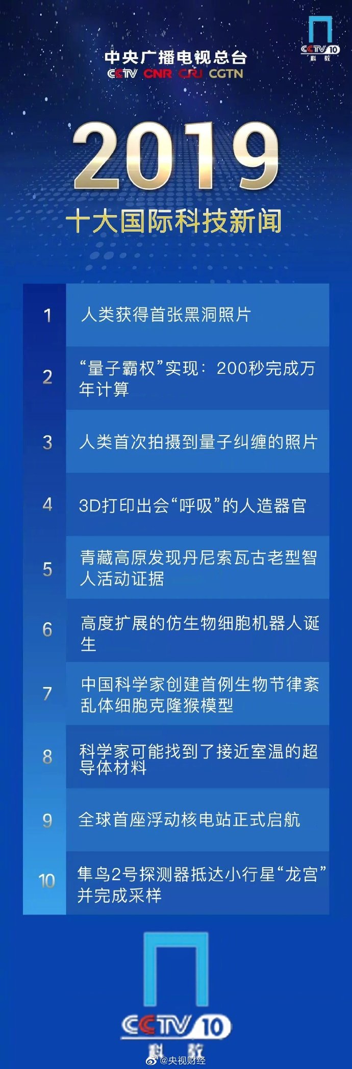 央視公布2019十大國(guó)內(nèi)國(guó)際科技新聞