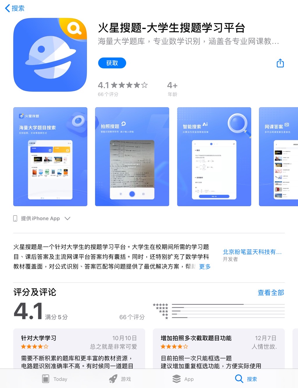 近日,粉筆職教旗下大學(xué)生搜題學(xué)習(xí)平臺(tái)火星搜題進(jìn)行了版本更新,其題目涵蓋英語(yǔ)政治高數(shù)及各類公共課、專業(yè)課。據(jù)蘋果應(yīng)用商店開發(fā)者信息介 ...