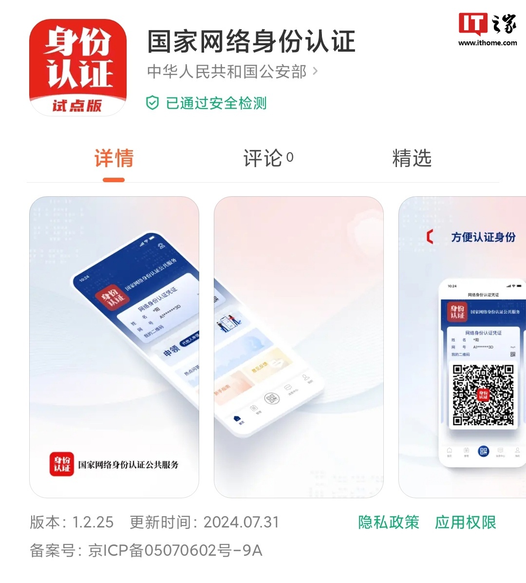 8月1日消息,近日,一些網(wǎng)友注意到,申領(lǐng)和使用網(wǎng)號(hào)網(wǎng)證的應(yīng)用國(guó)家網(wǎng)絡(luò)身份認(rèn)證App(試點(diǎn)版)已在多個(gè)應(yīng)用商店上線。申領(lǐng)網(wǎng)證之后,用戶會(huì)得 ...