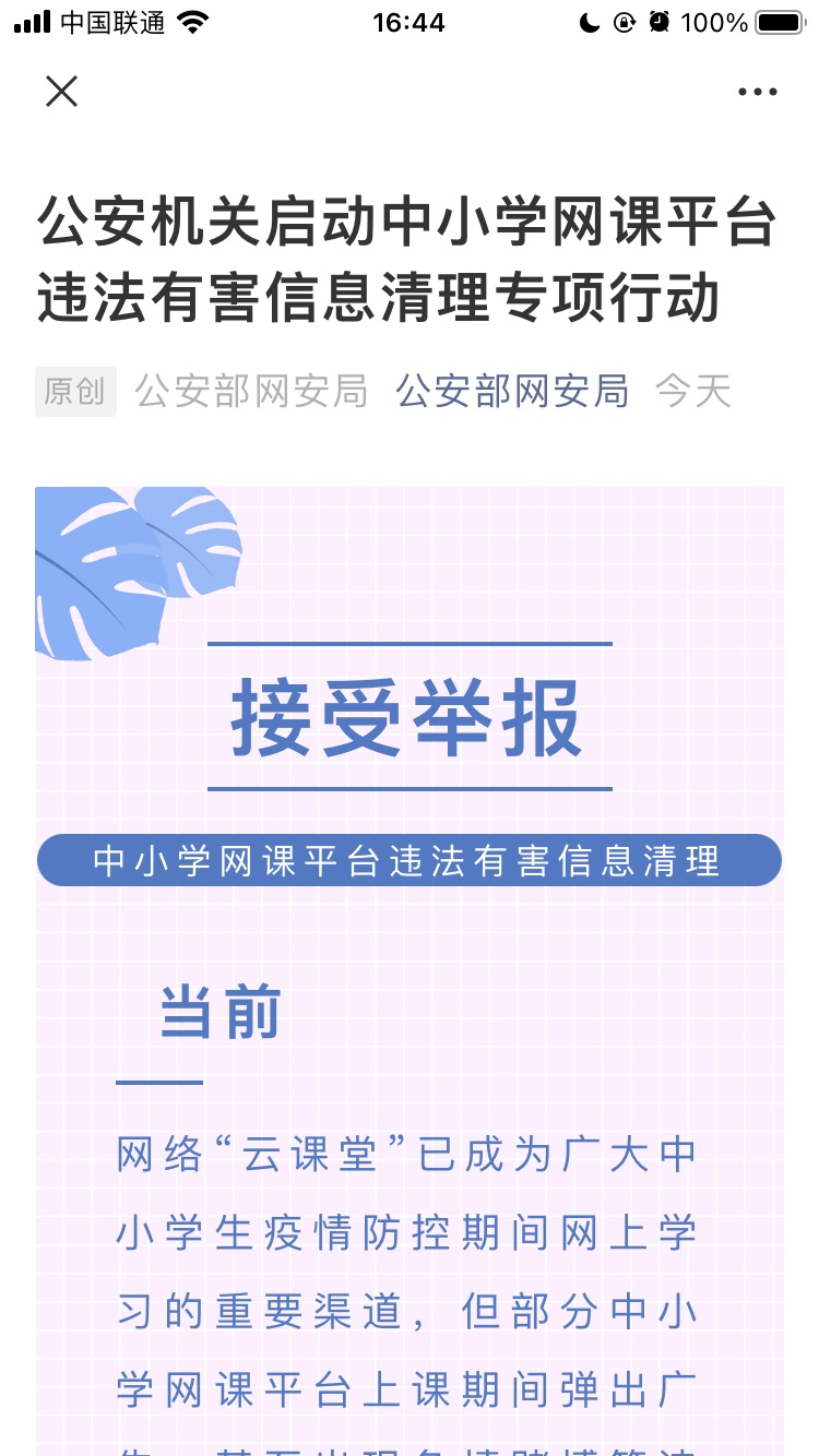 公安部網(wǎng)安局:網(wǎng)課平臺(tái)傳播含色情、賭博等信息可舉報(bào)