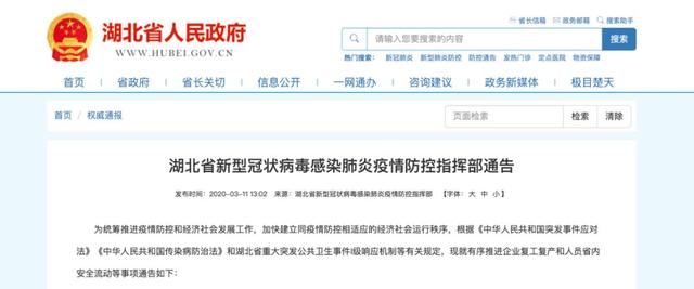 湖北最新通告:繼續(xù)嚴(yán)格管控離漢離鄂通道,繼續(xù)延遲開學(xué)11日,湖北省新型冠狀病毒感染肺炎疫情防控指揮部發(fā)布通告,對有序推進(jìn)企業(yè)復(fù)工復(fù)產(chǎn) ...