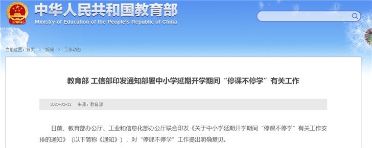 日前,教育部辦公廳、工業(yè)和信息化部辦公廳聯(lián)合印發(fā)《關(guān)于中小學(xué)延期開(kāi)學(xué)期間停課不停學(xué)有關(guān)工作安排的通知》(以下簡(jiǎn)稱《通知》),對(duì)停課不 ...