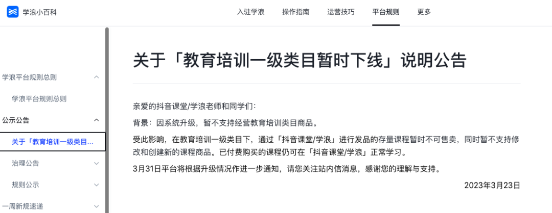抖音暫時下架教育培訓(xùn)類目商品,“因系統(tǒng)升級”