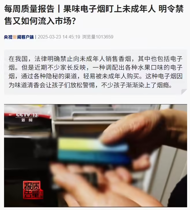 央視關(guān)注果味電子煙盯上未成年人,銷售“暗號(hào)”曝光