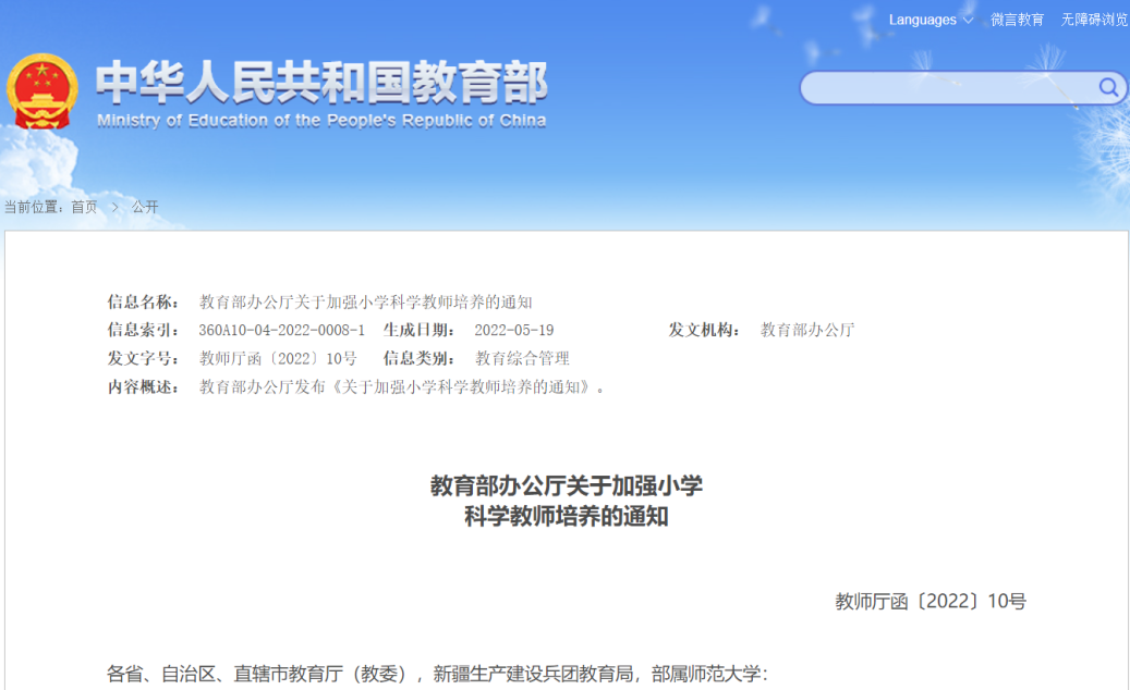 教育部發(fā)文:這個學(xué)科的小學(xué)教師將成為“重點培養(yǎng)對象”