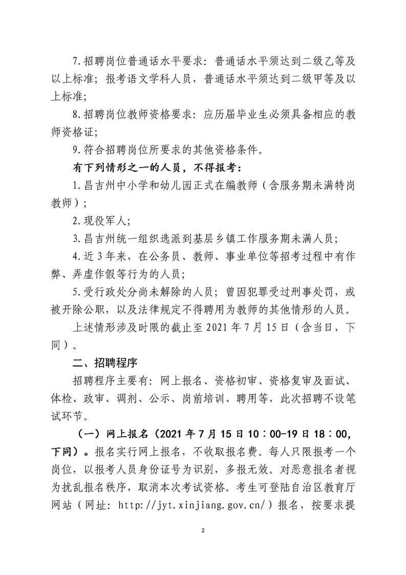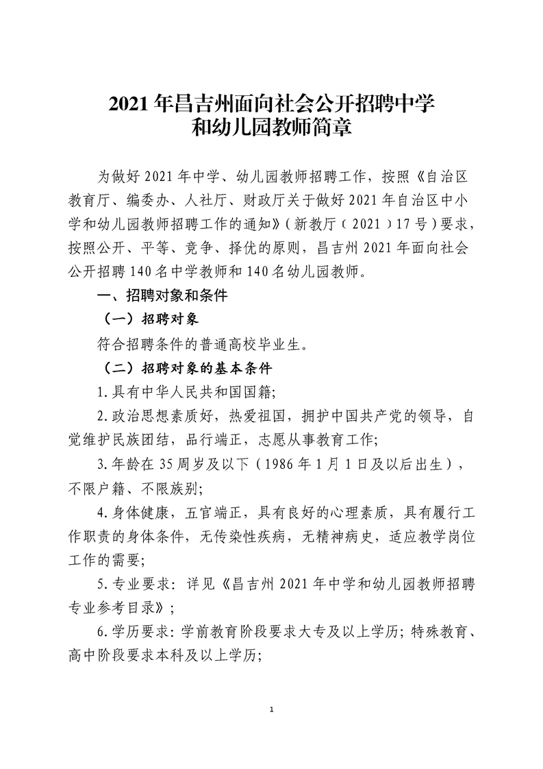 2021年昌吉州面向社會公開招聘中小學(xué)和幼兒園教師簡章